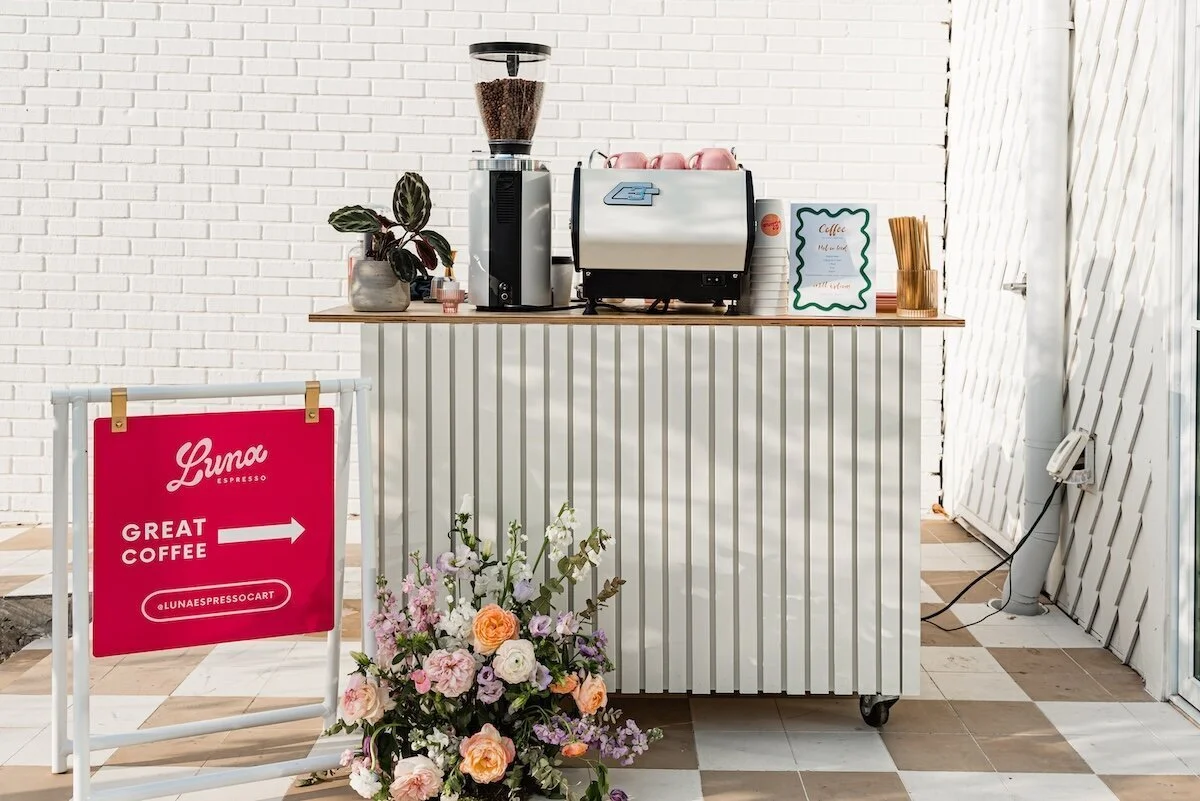 local garden center offering online purchases for curbside pickup, a coffee truck on-site